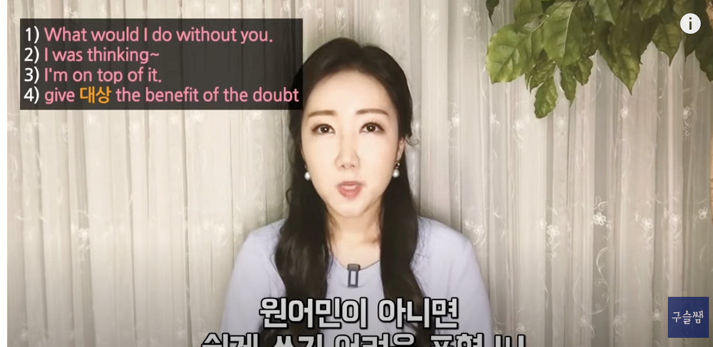 What would I do without you, I was thinking~, I am on top of it, give 대상 the benefit of the doubt.